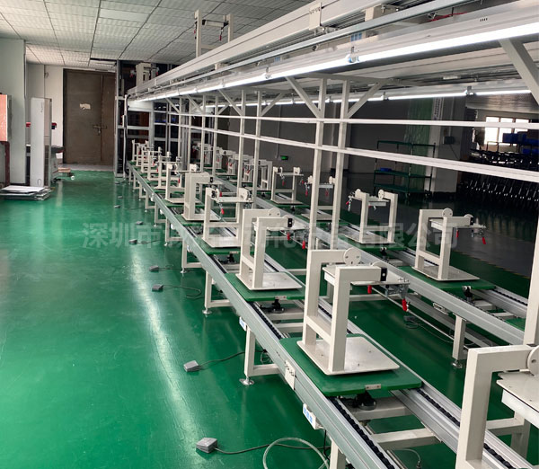采用鋁板履帶式傳動(dòng),電氣采用PLC可編程序加變頻器,通過(guò)位置檢測(cè)傳感器和液晶顯示屏,真正實(shí)現(xiàn)裝配工藝的自動(dòng)控制,并可根據(jù)生產(chǎn)需要,調(diào)整參數(shù),人員的數(shù)量來(lái)控制產(chǎn)量,實(shí)現(xiàn)最大產(chǎn)能效率,流水線上方采用鋁合金支架,照明采用LED照明燈及LED防爆燈具(用于噴漆工位)及節(jié)能風(fēng)扇,符合國(guó)家節(jié)能減排綠色環(huán)保的要求,氣動(dòng)回動(dòng)采用不銹鋼管,采用進(jìn)口氣動(dòng)工具,保證工具可靠性,提高勞動(dòng)效率。